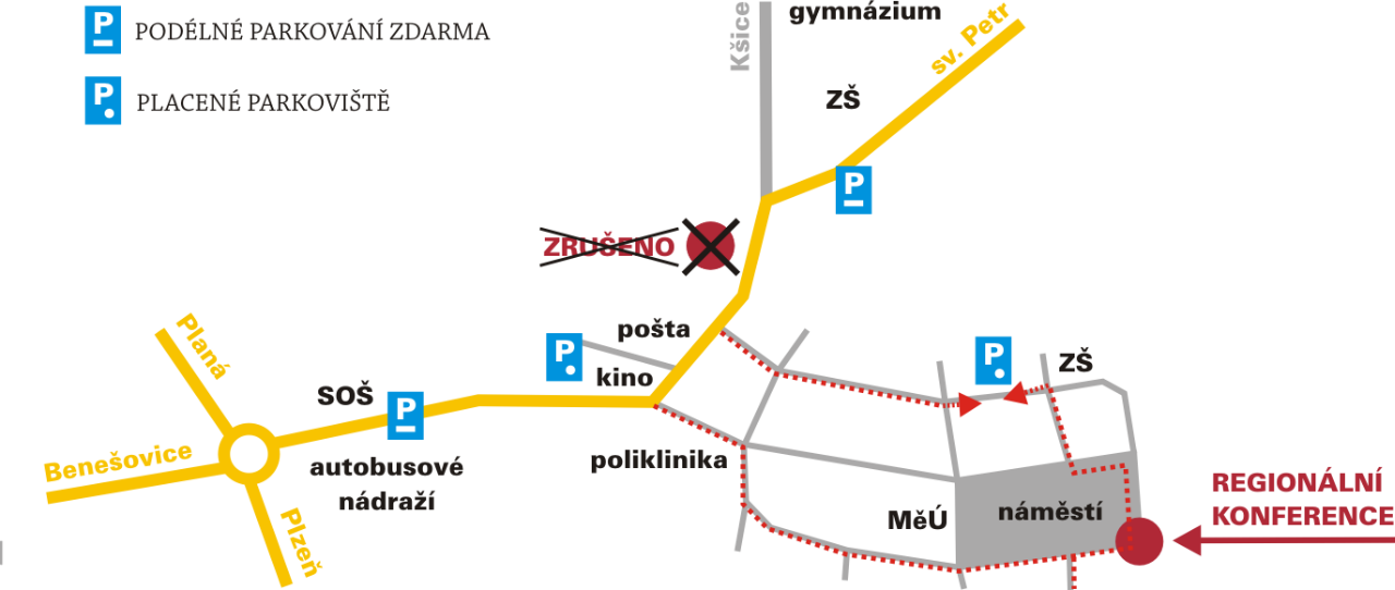 Parkování je možné na několika místech ve vzdálenosti 100 - 400 m od místa konání akce. Některá parkoviště jsou zpoplatněna (viz mapka).